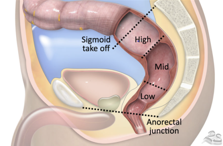 A diagrammatic representation of the mesorectal space (in yellow) is shown in Figure 1 below [5].